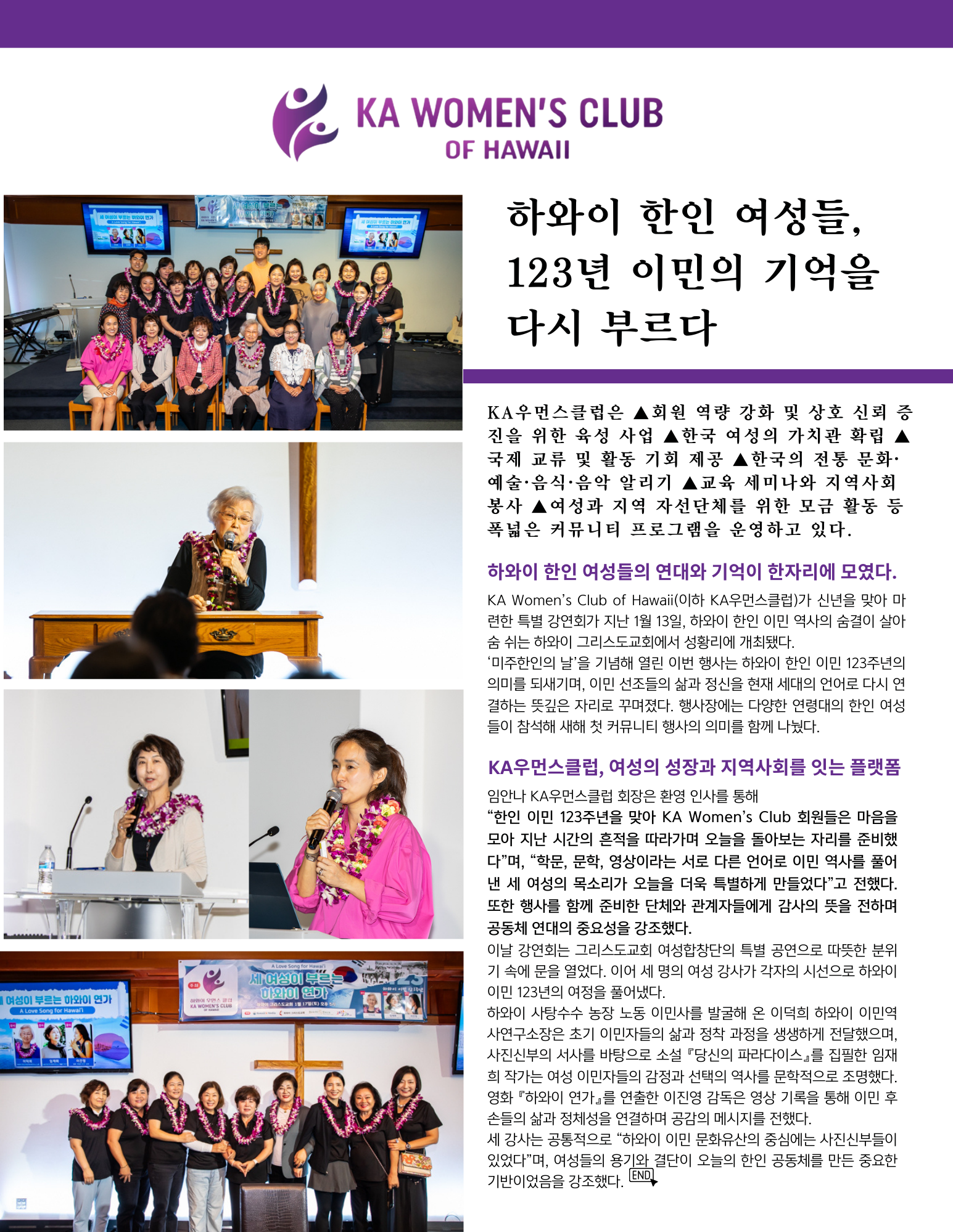 KA우먼스클럽(KAWH)은 1991년 설립된 비영리 단체로, 교육·문화·봉사 활동…